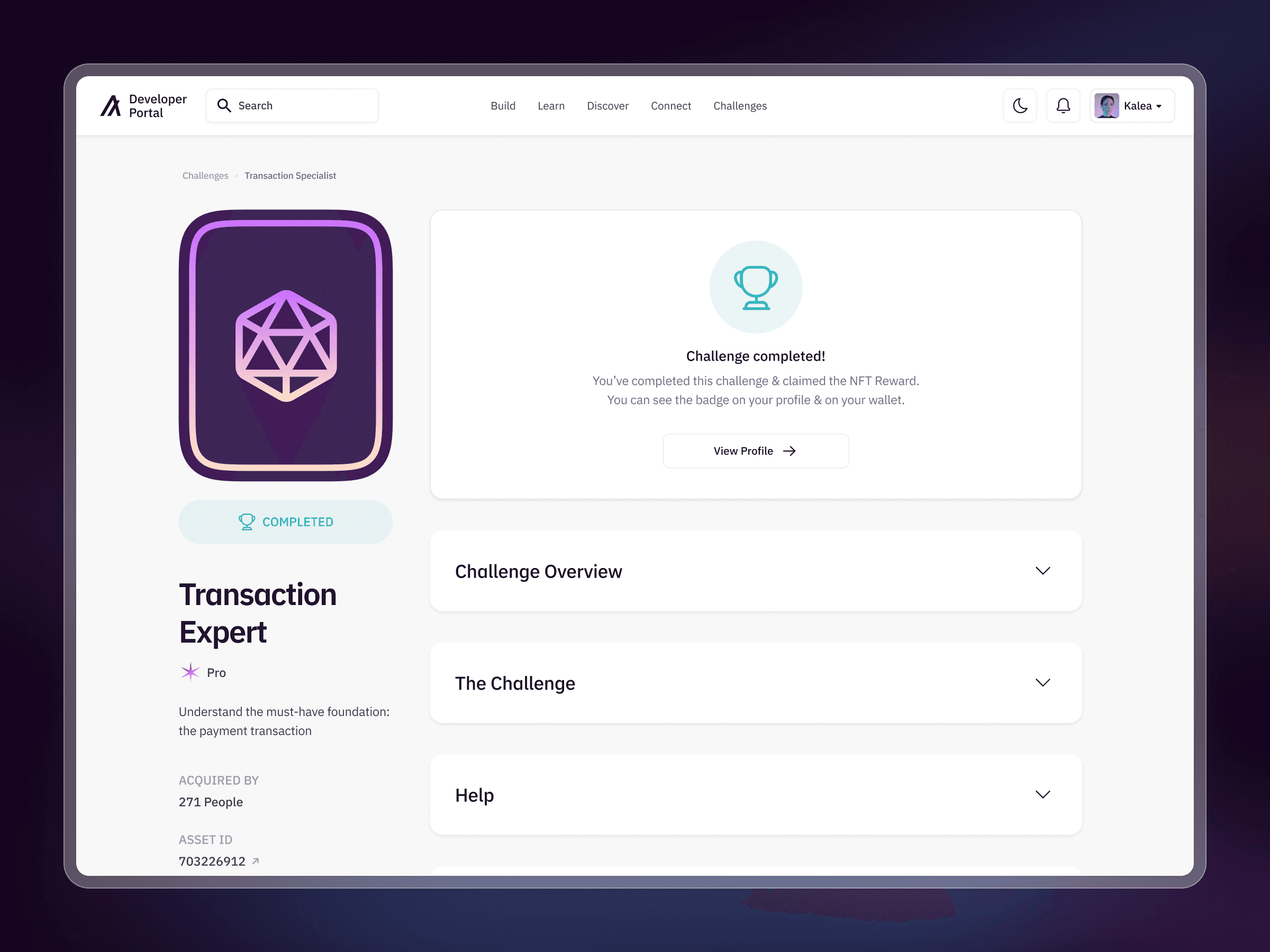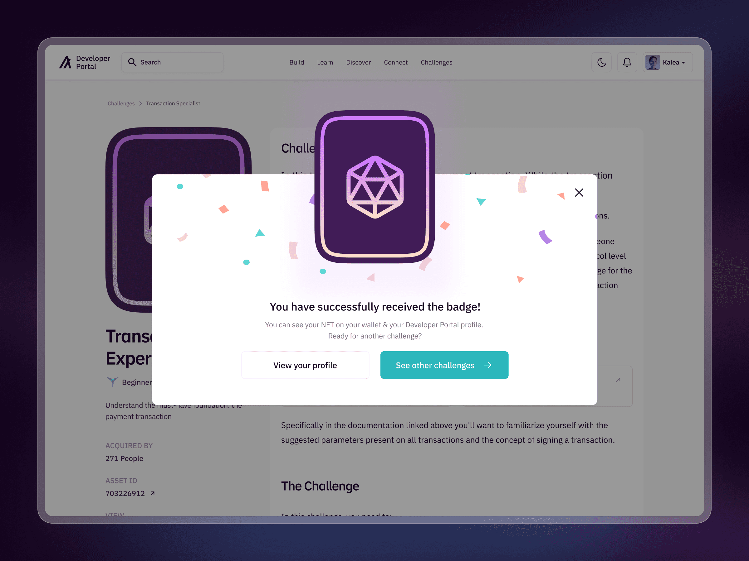 I worked on structuring the challenge flows, difficulty progression, and reward mechanics, including NFT-based achievements issued on-chain. The focus was to make the experience motivating and clear, encouraging developers to explore Algorand by building, not just browsing docs.